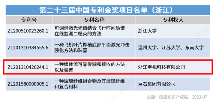 今年7月,第二十三届中国专利金奖公布获奖名单,本次中国专利金奖全国共30项,浙江斩获4金,bob以《一种媒体流可靠传输和接收的方法以及装置》发明专利荣膺金奖,成为国内行业首家获此殊荣的企业。