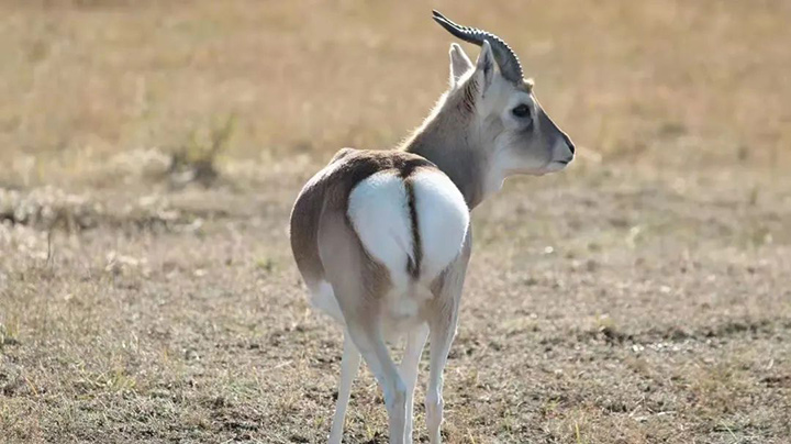臀部自带白色桃心,平添几分活泼俏皮,这是生活在青海湖畔的普氏原羚,国家一级重点保护野生动物,被称为“奔跑在草原上的大熊猫”。