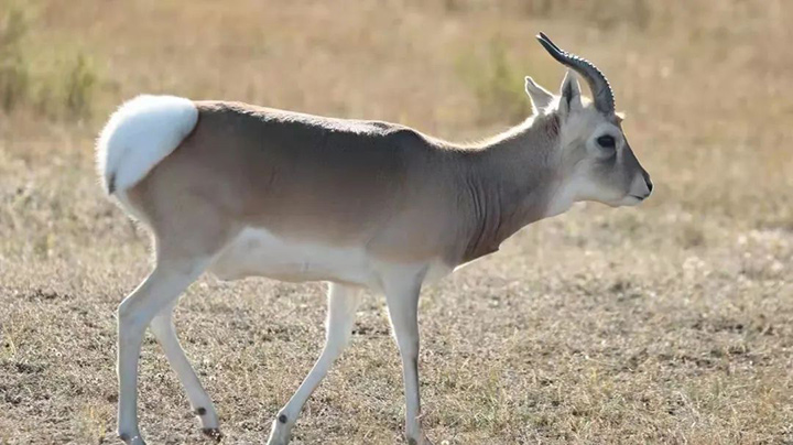 普氏原羚又称中华对角羚、滩黄羊,是我国特有的野生动物,在二十世纪末曾一度成为世界上最濒危的羚羊,现仅分布在青海湖周边地区,被世界自然保护联盟IUCN评定为濒危等级。