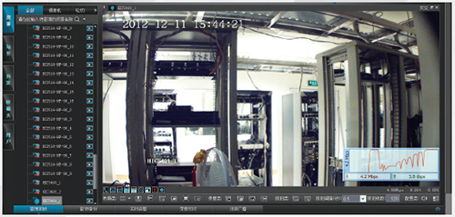 码率自适应调整技术:在视频监控的源端和目的端之间建立带宽协商机制,解码端能够根据接收到媒体流的丢包情况反馈给编码端,编码端自动调整码率直到解码端收到不丢包的媒体流为止。主要应用在带宽不稳定、受干扰的网络中,譬如3G/WIFI无线干扰、监控业务网络与其他业务网络混用等。测试过程中,首先建立一路2Mbps的实况业务,刚开始很流畅;然后使用思博伦测试仪TestCenter手动打入部分垃圾业务制造网络拥塞,实况业务开始丢包、图像卡顿;而后码率逐步下降到1Mbps,图像又恢复流畅,细节清晰度稍有下降;撤消垃圾业务之后,1Mbps的实况码流又慢慢恢复至2Mbps,图像仍旧很流畅,细节清晰度恢复(图5)。