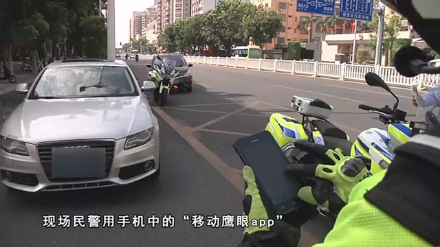 随后,记者跟随民警上路执法,现场民警用手机中的“移动鹰眼app”对车牌号扫描识别,可以快速甄别涉嫌交通违法的车辆,通过这一台智慧新警务终端机,让违法车辆无处藏身。