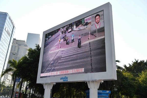 在电子屏幕上,记者看到了车辆违法和行人闯红灯行为被曝光的画面。“我觉得这种方式很好,能起到警示作用。”市民段立婷说。