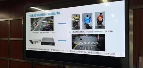 记者了解到,该装置通过在十字路口部署智能识别卡口相机,对两、三轮车进行智能识别分类抓拍。通过对两、三轮车辆的图像特征进行机器视觉深度学习,用大量的素材进行机器训练,配合交警实战应用平台,准确抓拍不按车道行驶、逆行等违法行为;通过对接红绿灯检测器等辅助设备,准确抓拍闯红灯等违法行为。然后平台输出违法图片,形成违法证据链,并按照两、三轮车的特征,对有违法行为的车辆行驶照片进行智能分拣归类。抓拍完成之后,车辆违法数据将抄告给饿了么、美团、UU跑腿等对应的企业,作为企业内部加强管理的依据。