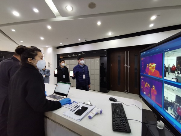 话音刚落,员工们迅速离开座位,没有人质疑,拉开距离,快速通过安全通道下楼。办公区内贴着“隔离室”三个字的会议室房门紧闭。几分钟前,一名员工走了进去,量过体温后,向公司报告了发热情况……