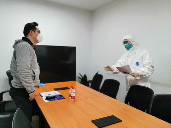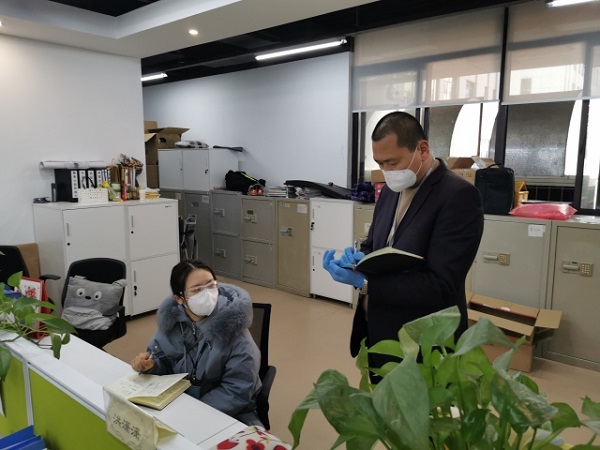 “现在对你进行流性病学调查,提前说明一下,你对问题的回答将负法律责任,请如实回答……”身着白色防护服的社区卫生服务中心医生,迅速到达办公隔离室,调查该员工近14天内的居住、旅游和病人接触史,“我春节没有离开杭州,上班时在卡口检测体温正常,只是刚刚感觉有点发热,没有其他症状。”根据患者的回答,医生建议可以由企业安排专车专人,送患者前往滨江医院发热门诊进一步排查。