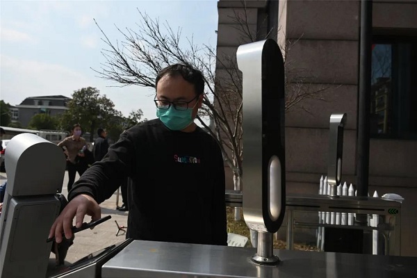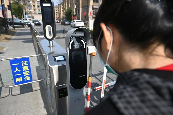 “嘀”一声,余杭区星桥街道汤家社区的居民就进入了小区大门,测量体温,身份验证,识别登记,整个过程只要短短几秒钟。