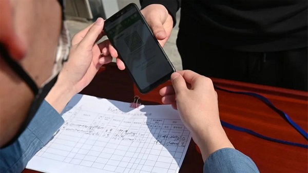 许敏捷指着门禁上的一处扫码设备表示,居民依托杭州市政府防疫安检统一部署,到社区物业申领属于自己小区的唯一“生活码”,这样一来,小区居民就可以用手机扫码通行,不属于小区居民的访客才需要登记。
