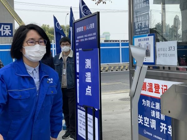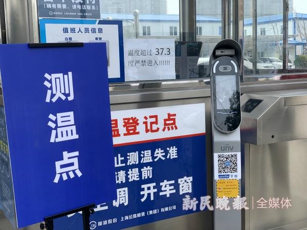 记者在启动仪式现场看到,仪式设在济阳路的工程指挥部里,位于济阳路(卢浦大桥-闵行区界)快速化改建工程的路段。和平时的工地不同,疫情期间,这里运用智慧手段设置了“刷脸测温系统”。