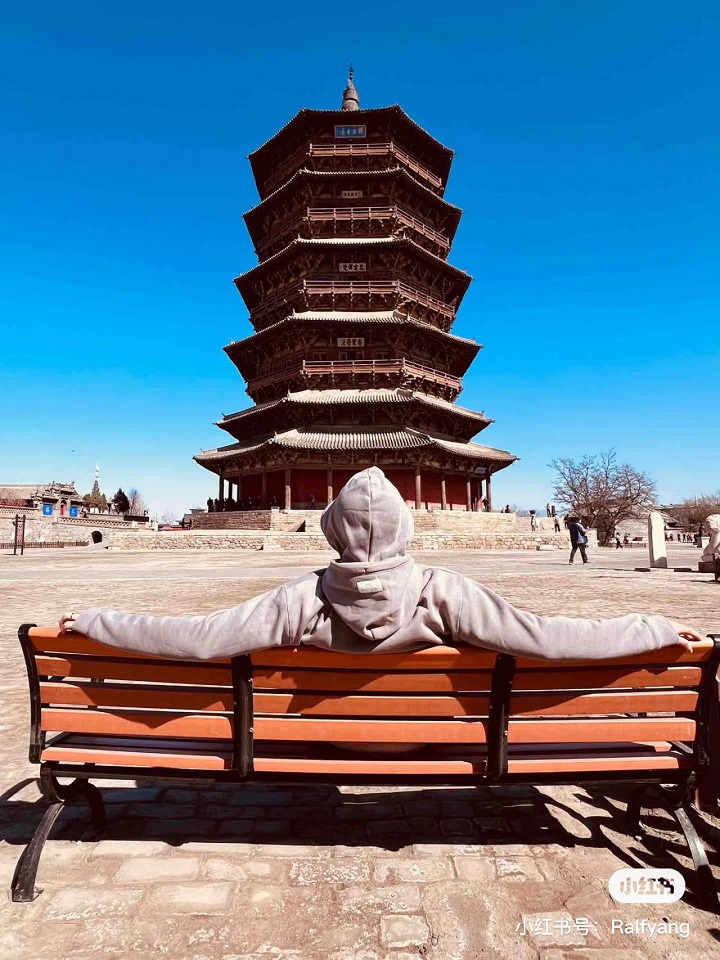 很多年轻人慕名去应县木塔打卡。图源:小红书