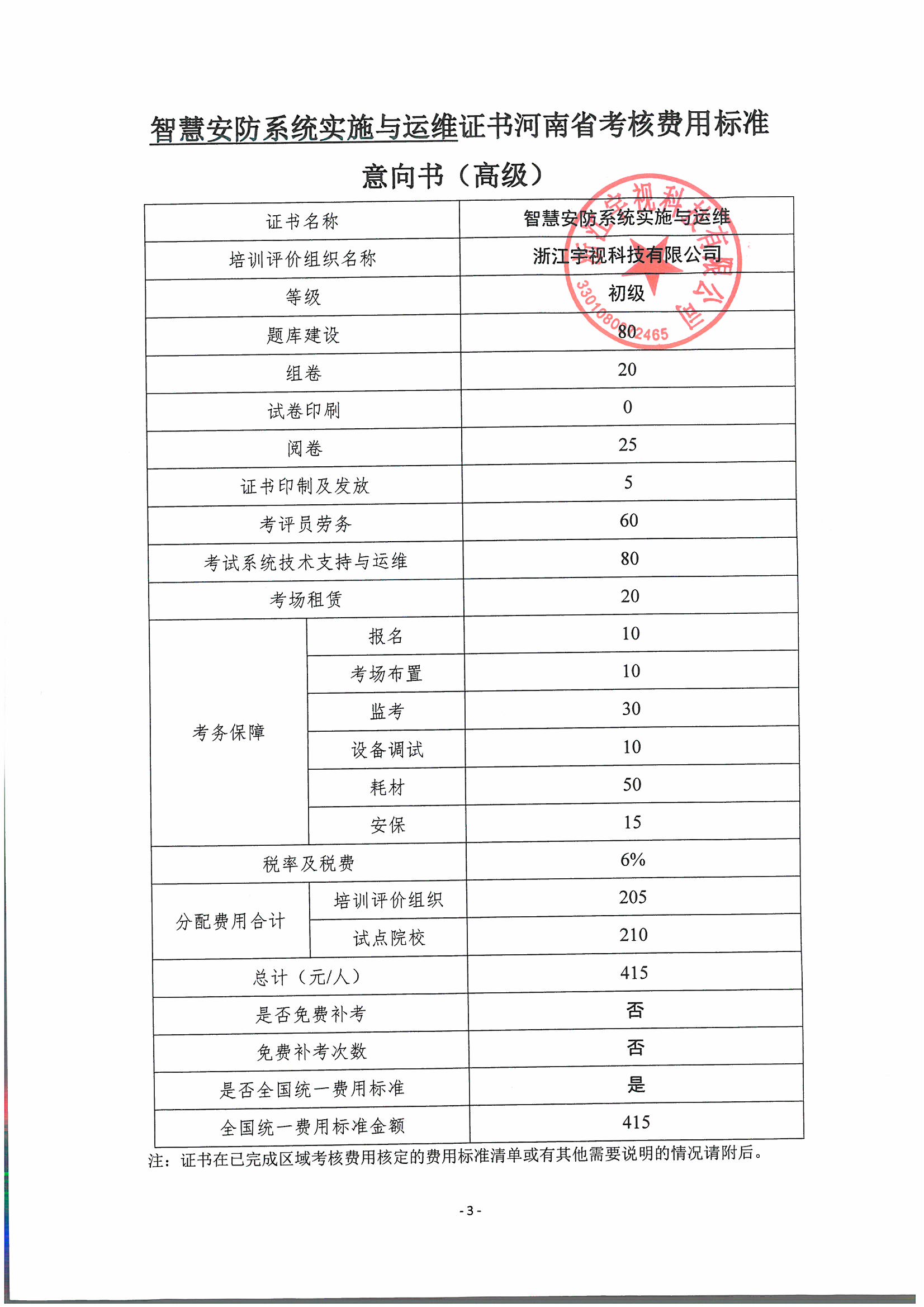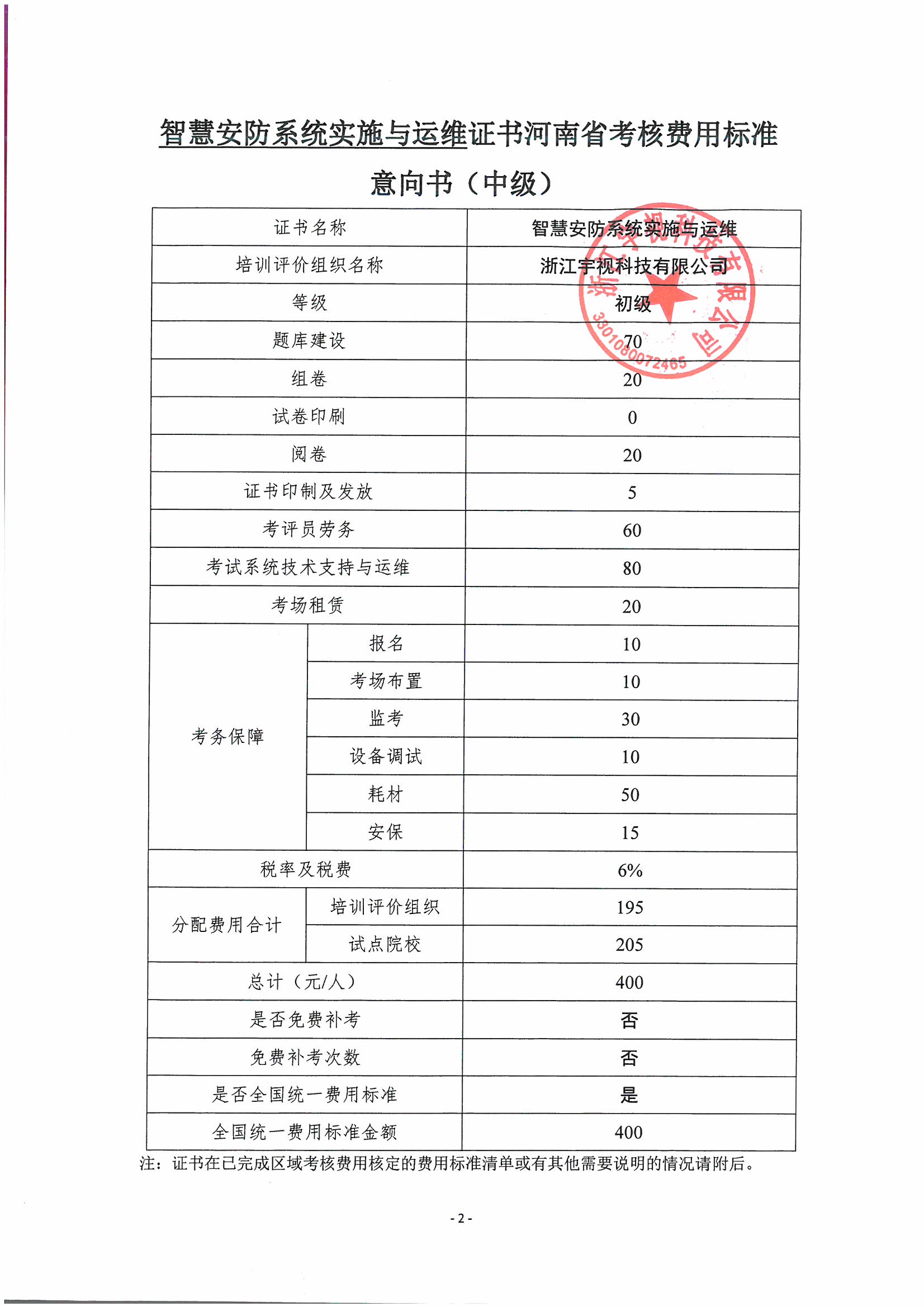 河南-智慧安防系统实施与运维职业技能等级证书考核成本核算方案