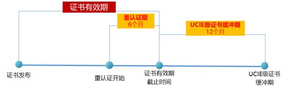 2、重认证时间内通过重认证,证书有效期刷新自原证书有效期截止时间起计算3年(UCIE为5年)。同时,专家级证书在重认证期间和缓冲期内均可以通过参加笔试从而激活和刷新证书有效期。